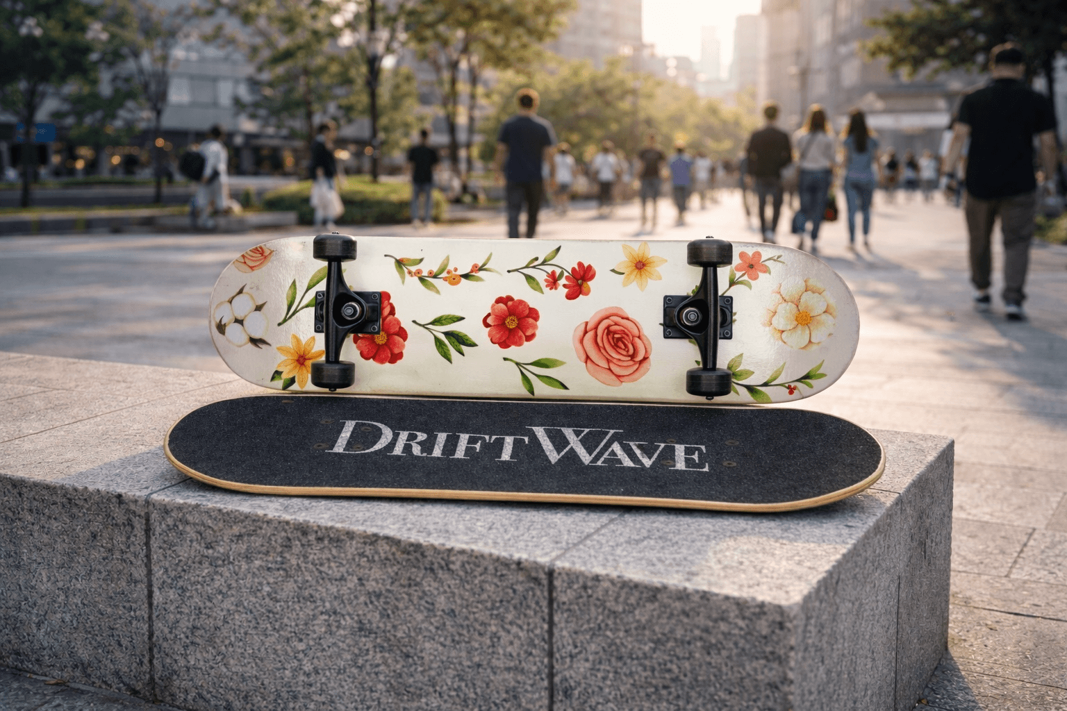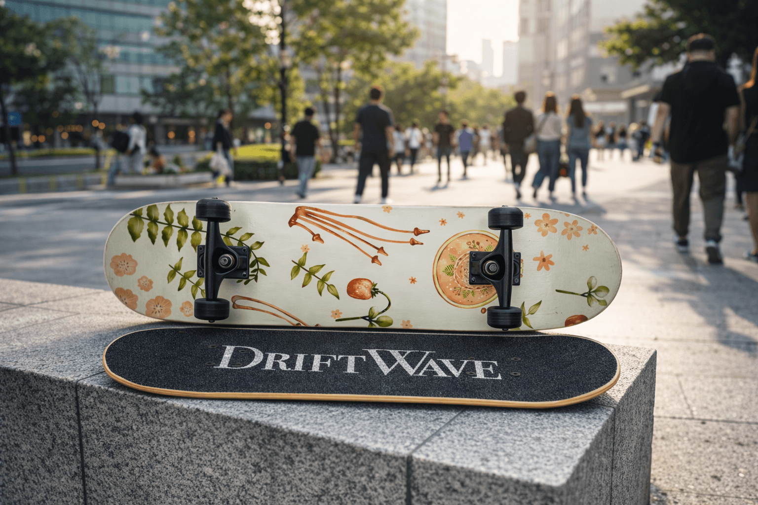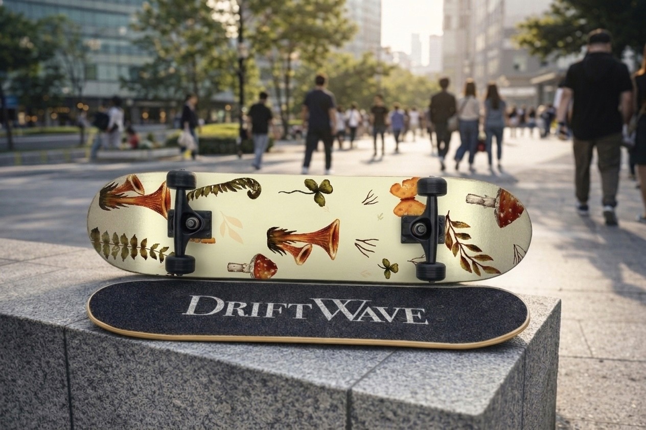 DriftWave Skateboard Deck — Illustration + Product Design